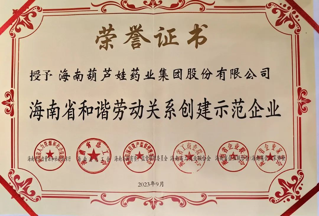 星空电子药业集团获评“海南省和谐劳动关系创建示范企业”